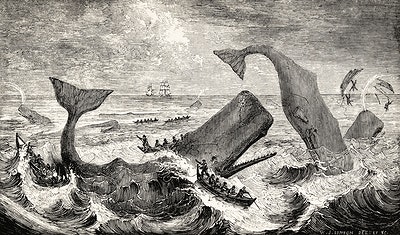 After dashing off yesterday’s post on Sunday night, I picked up a little book I’ve had in my private collection for some years now, The Story of Yankee Whaling.  It’s part of the now-defunct American Heritage Junior Library series of history books for young readers, and it’s a charming little volume about the grand adventures and brutal lives of whalers in colonial and nineteenth-century America.