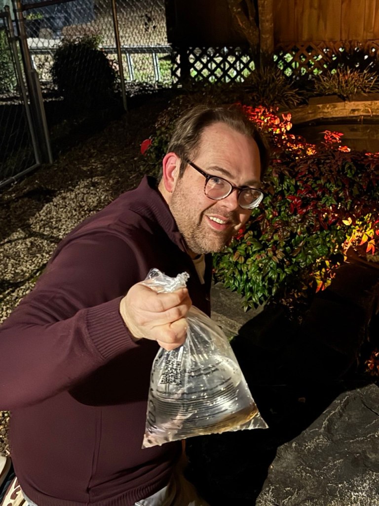 I’ve been having late-night conversations with Microsoft’s CoPilot AI about stocking the pond, in addition to doing research on my own. CoPilot brought up ramshorn snails, which I have read about as well. Unlike JTSs, they lay eggs, so overpopulation is more of a concern; however, koi and the rosy red minnows I added to our pond will often eat the eggs and/or baby snails, so the population should stay in check. I’ve ordered around twenty of them from a seller on eBay (apparently, you can purchase live snails from randos on the Internet) and will introduce those when they arrive next week.