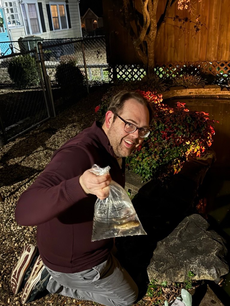 Yours portly has found a new obsession: the koi pond that came with our new home. I’ve been so passionate about tending to this pond, Dr. Wife bought me a book that is apparently the authority on all things koi (that link is an Amazon Affiliate link; I receive a portion of the proceeds from any purchase made through that link at no additional cost to you).