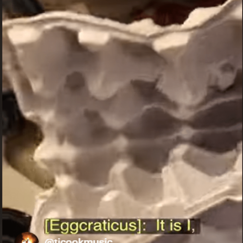 That’s the setup for today’s videos, both of which feature the fearsome Eggcraticus, the villainous, ravenous egg crate who is out for eggs: